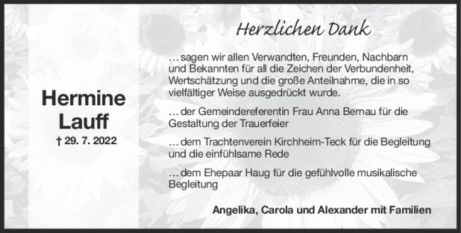 Danksagung Hermine Lauff