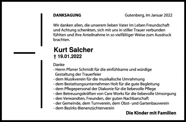 Danksagung Friedrich “Fritz” Lay 19/02/2022