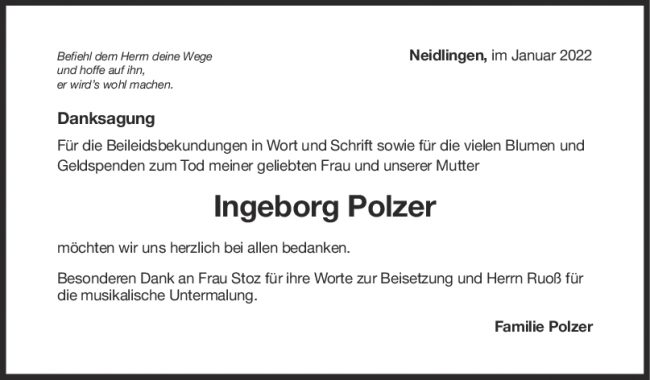 Danksagung Ingeborg Polzer