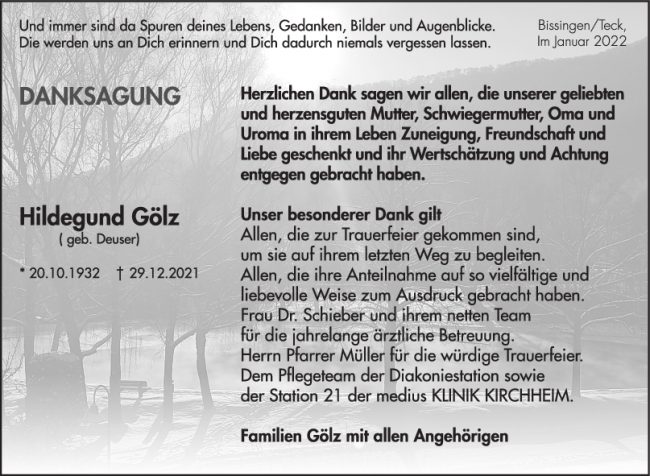 Danksagung Hildegund Gölz
