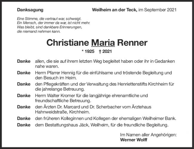 Danksagung Christiane Maria Renner