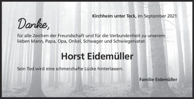 Danksagung Horst Eidemüller