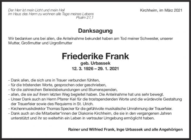 Danksagung Friederike Frank
