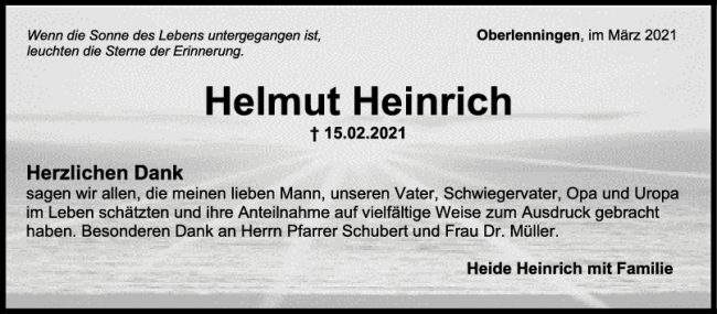 Danksagung Helmut Heinrich