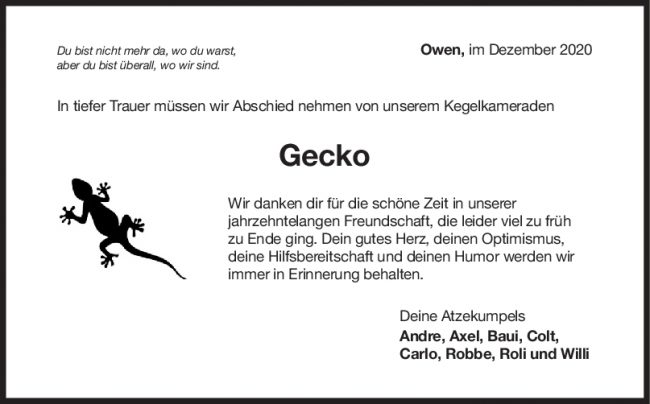 Nachruf Gecko