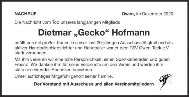 Nachruf Dietmar Hofmann (Gecko)