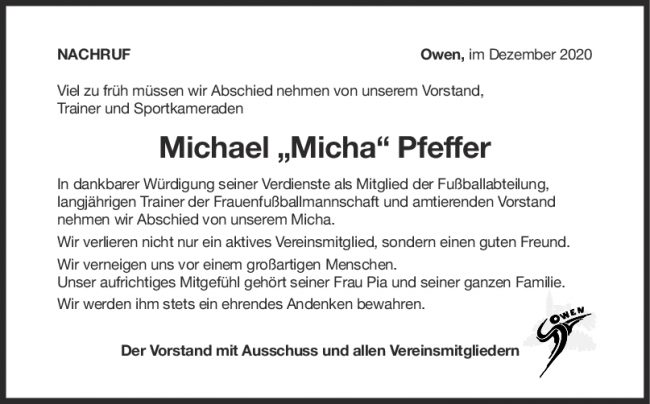 Nachruf Michael Pfeffer