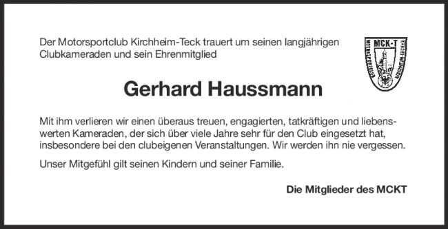 Nachruf Gerhard Haußmann