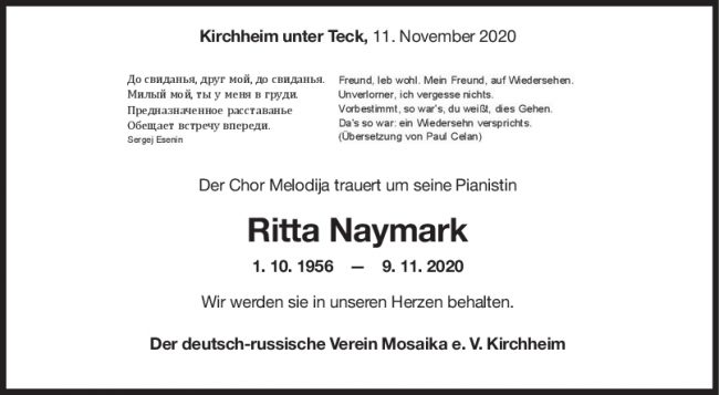 Nachruf Ritta Naymark