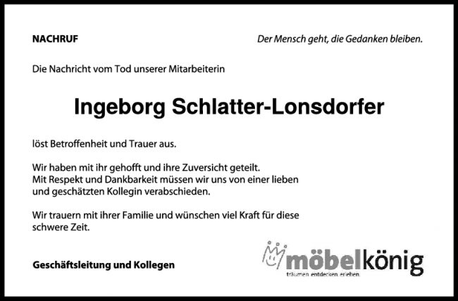 Nachruf Ingeborg Schlatter-Lonsdorfer