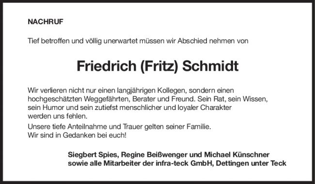 Nachruf Friedrich (Fritz) Schmidt
