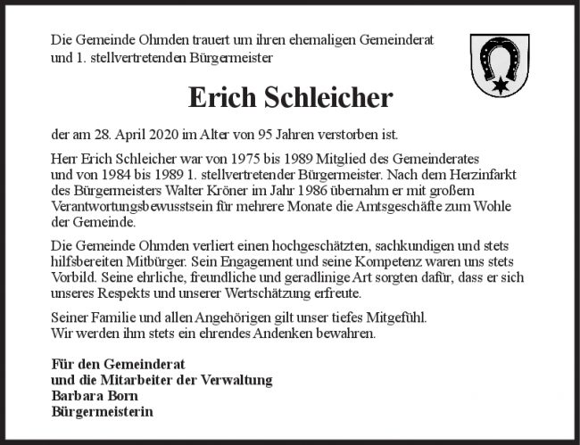 Nachruf Erich Schleicher