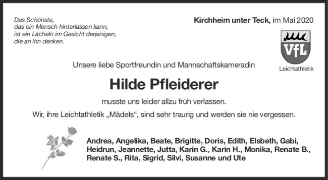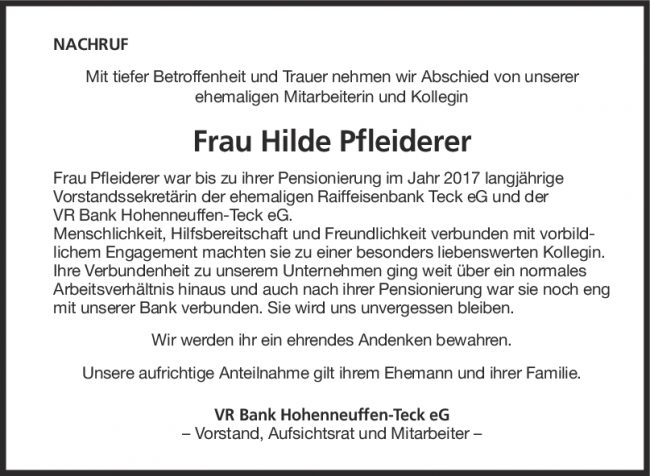 Nachruf Hilde Pfleiderer