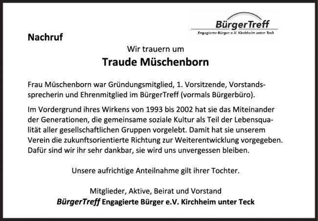 Nachruf Traude Müschenborn