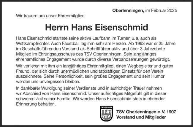 Nachruf Hans Eisenschmid