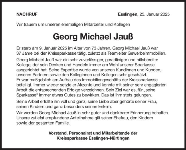 Nachruf Georg Michael Jauß