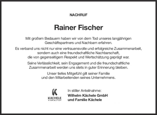 Nachruf Rainer Fischer