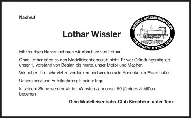 Nachruf Lothar Wissler