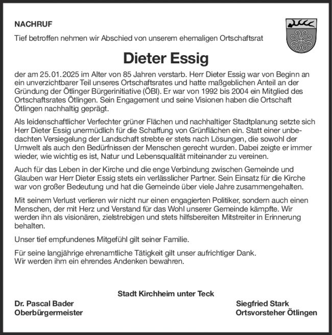 Nachruf Dieter Essig