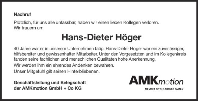 Nachruf Hans-Dieter Höger