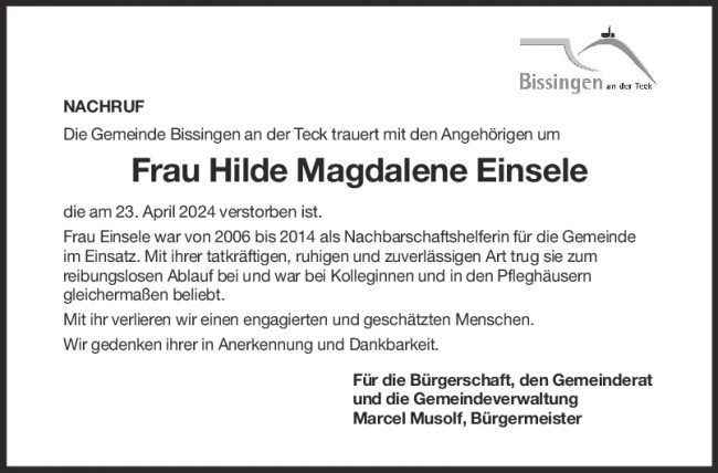 Nachruf Hilde Einsele