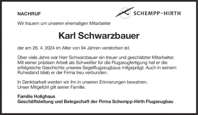 Nachruf Karl Schwarzbauer