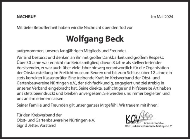 Nachruf Wolfgang Beck