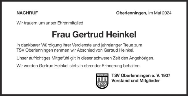 Nachruf Gertrud Heinkel