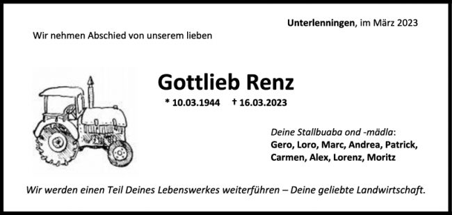 Nachruf Gottlieb Renz