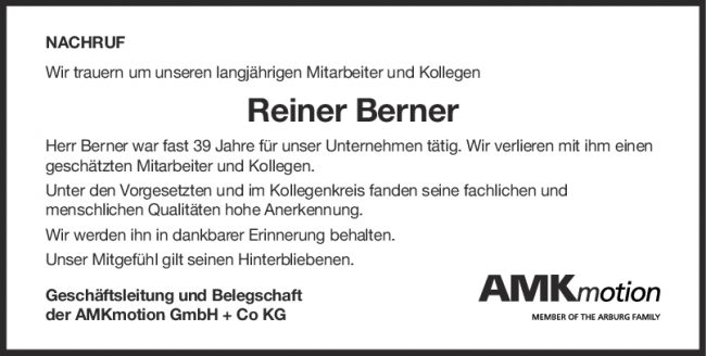 Nachruf Reiner Berner