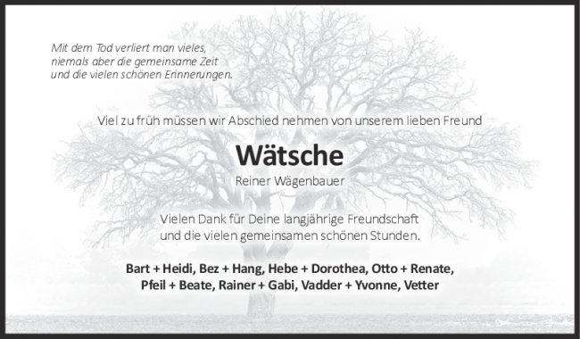 Nachruf Reiner Wägenbauer