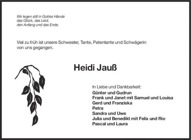 Nachruf Heidi Jauss