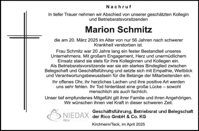 Nachruf Marion Schmitz