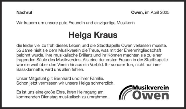 Nachruf Helga Kraus