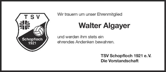 Nachruf Walter Algayer