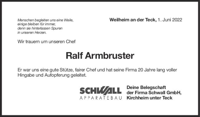 Nachruf Ralf Armbruster