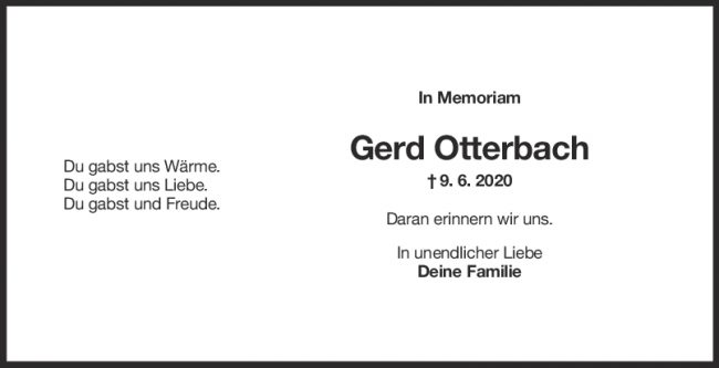 Nachruf Gerd Otterbach 09/06/2022