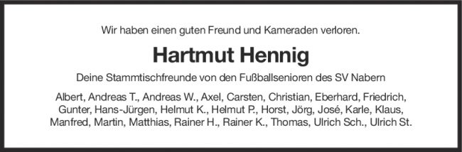 Nachruf Hartmut Hennig