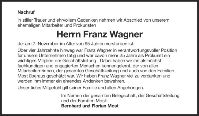 Nachruf Franz Wagner