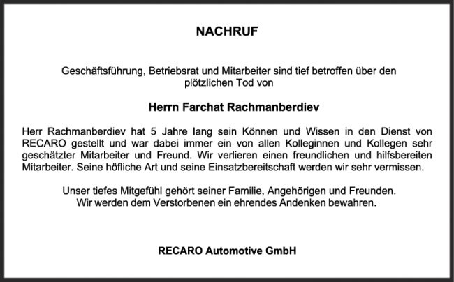 Nachruf Farchat Rachmanberdiev