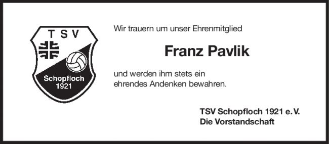 Nachruf Franz Pavlik