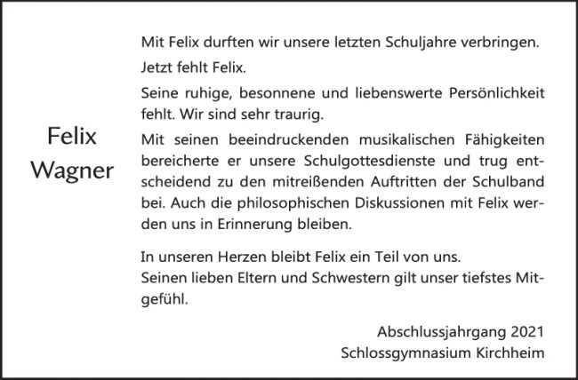 Nachruf Felix Wagner