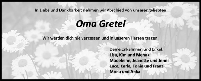Nachruf Oma Gretel