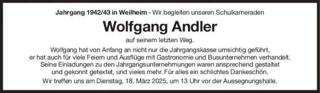 Nachruf Wolfgang Andler