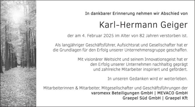 Nachruf Karl Hermann Geiger