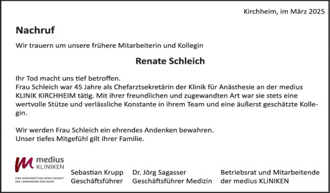 Nachruf Renate Schleich
