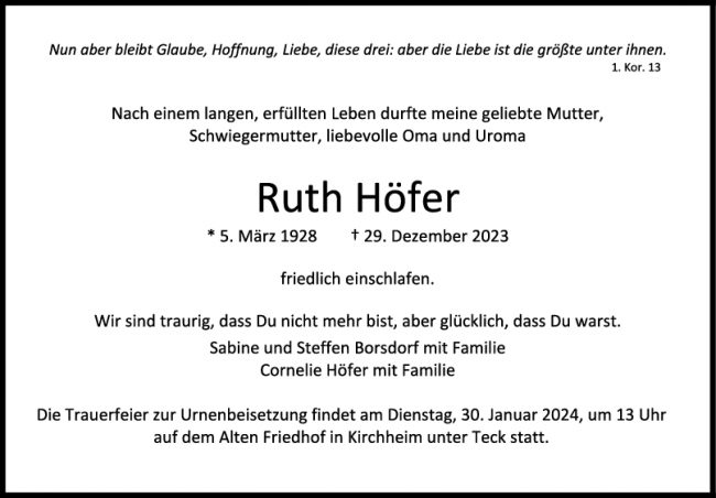 Trauer Ruth Höfer