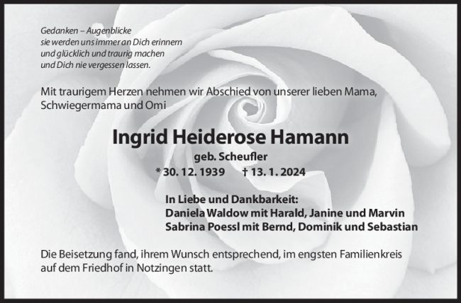 Trauer Ingrid Hamann