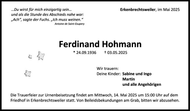 TodesanzeigeVon 10. Mai 202517 Kommentare