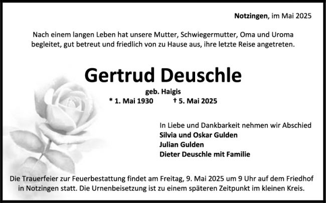 TodesanzeigeVon 5. Mai 20251 Kommentar